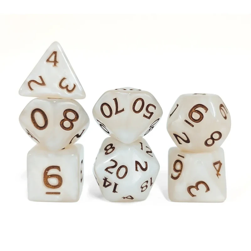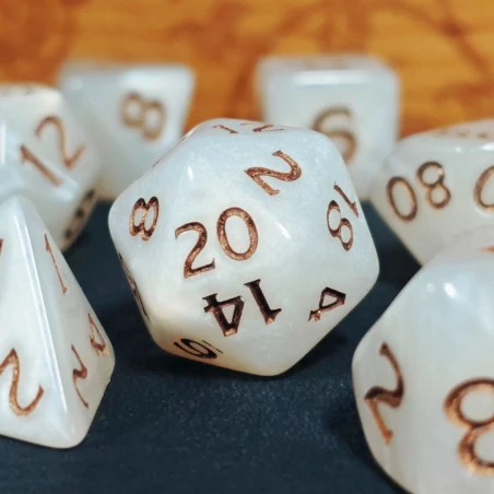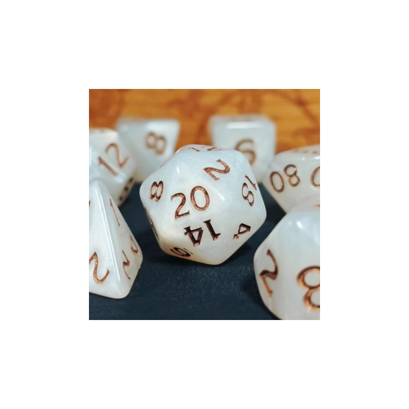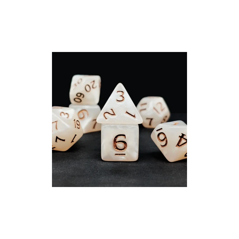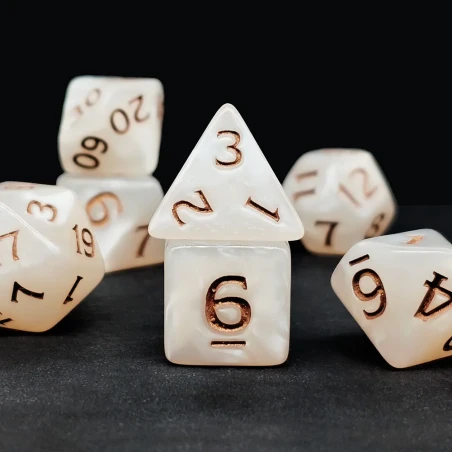 • Zestaw 7 kości wykonanych z akrylu. Idealnie nadają się do każdego systemu i dla każdego gracza.