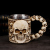 Wyjątkowy kubek wykonany z żywicy, z wkładką ze stali nierdzewnej, z zdobienami utrzymanymi w stylu gotyckim.