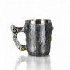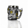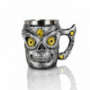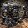 Epicki kubek wykonany z żywicy, z wkładką ze stali nierdzewnej, ze zdobieniami w kształcie czaszki.