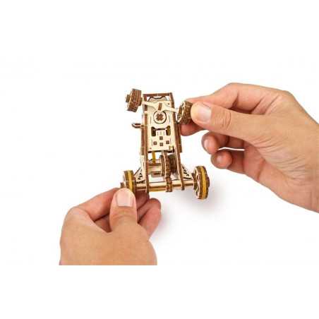 Witaj w powiększającej się flocie pojazdów w niesamowitej kolekcji drewnianych modeli mechanicznych Ugears! Chcielibyśmy, abyście poznali naszego nowego pupila: szybkiego i zabawnego Mini buggiego. Ten miniaturowy wydmowy buggy jest gotowy, aby zabrać Cię na przejażdżkę.