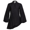 Charakterystyczny design obejmuje stojący kołnierzyk, subtelne guziki oraz delikatną asymetrię na dole.