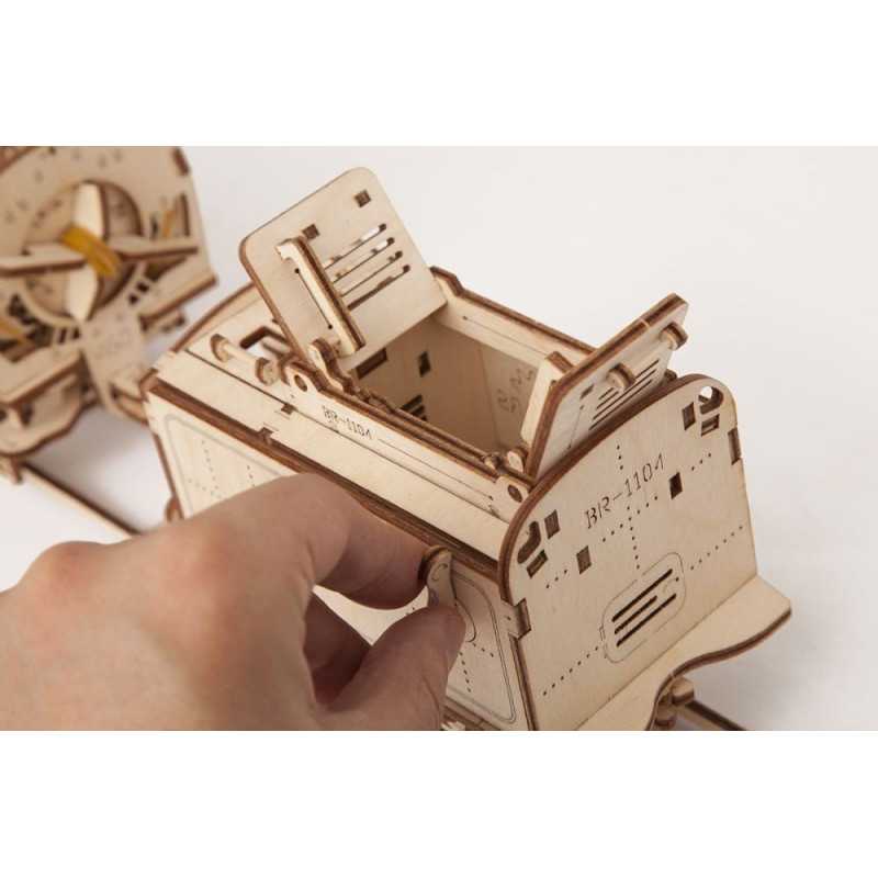 Ten model jest wykonany ze sklejki o wysokiej jakości, sprawdzonej przez europejskie laboratoria. W środku opakowania znajdziesz płyty ze sklejki, z których wystarczy wycisnąć gotowe części i przekształcić je w gotowy działający model drewniany. Składa się go bez użycia kleju na podstawie ilustrowanej instrukcji krok po kroku, dostępnej w języku polskim i 10 innych językach (ukraińskim, angielskim, niemieckim, francuskim, hiszpańskim, rosyjskim, tureckim, włoskim, koreańskim i chińskim).