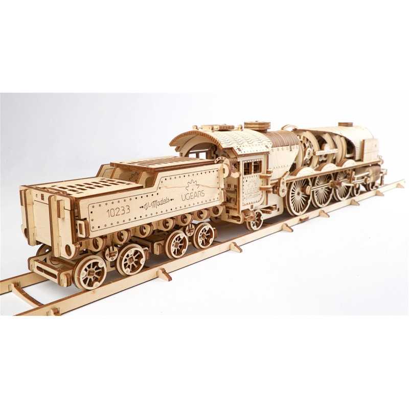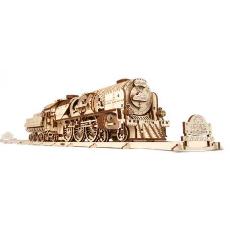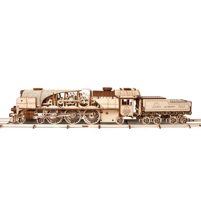 Składając “Lokomotywę z tendrem V-Ekspres” od UGEARS poczujesz się jak konstruktor odkrywca, który jako pierwszy obserwuje magię współdziałania wielu elementów i ożywiania mechanizmu.