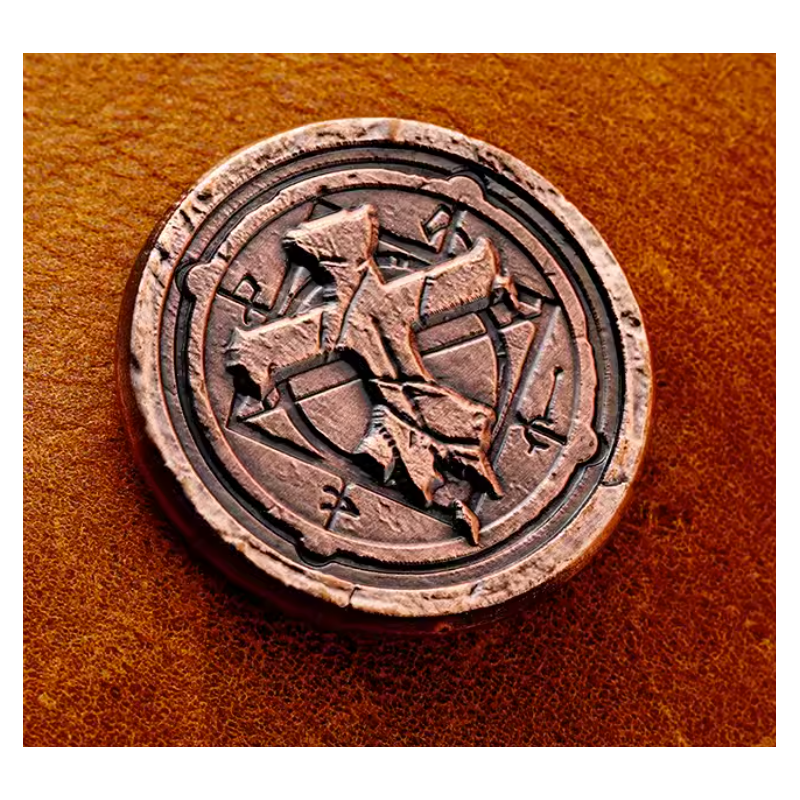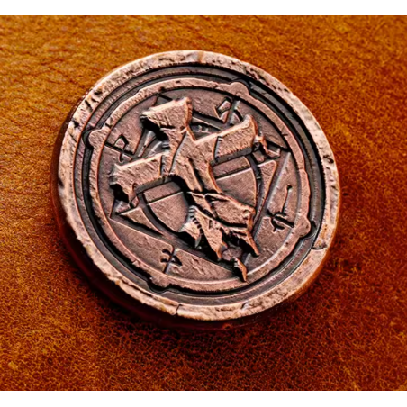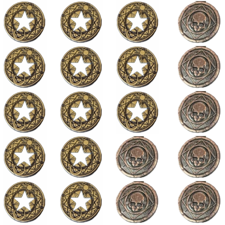 Wykonany ze stopów cynku zestaw 20 cudownych, ciężkich monet, które zostały zainspirowane magicznymi kręgami, pieczęciami i przywołaniami.
