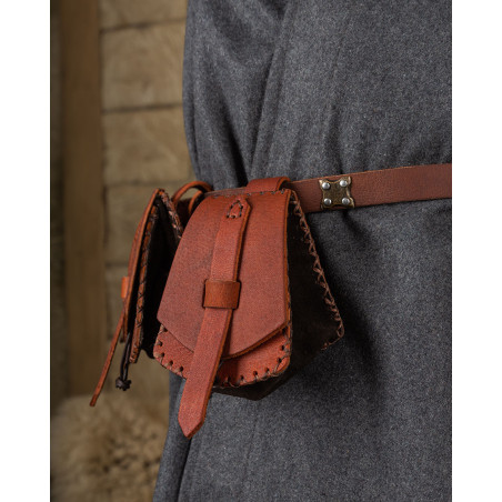 Ładna, mała torba na pas z misternymi ręcznymi szwami i prostą pętlą do zamykania.