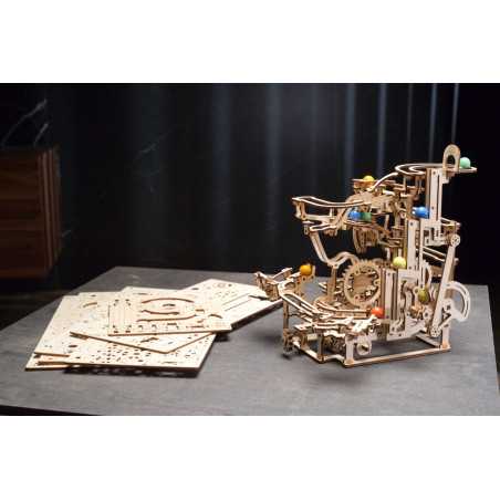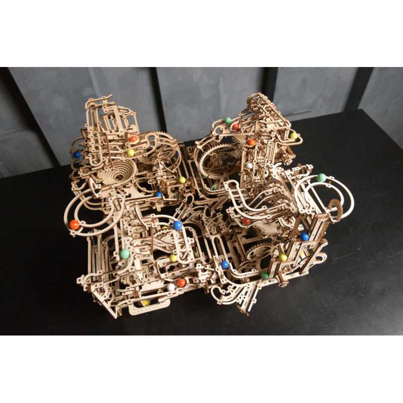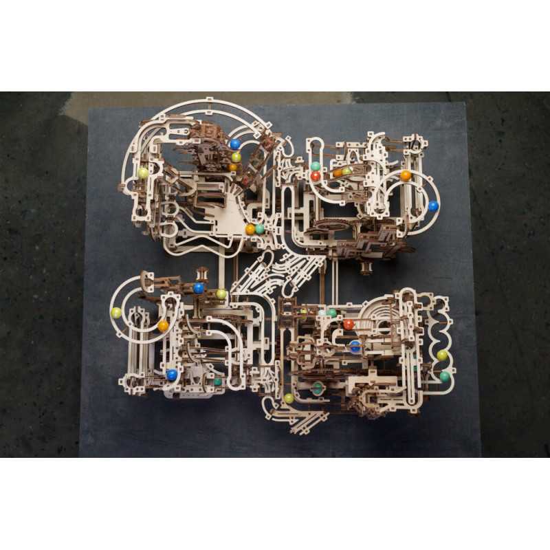 Model ten można połączyć przodem lub bocznie z innymi Marble Runami od UGEARS o tej samej lub innej konstrukcji (można połączyć 2 lub 4 modele parami za pomocą specjalnych łączników znajdujących się w zestawie).
