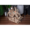Marble Run Wciągnik Stopniowy to ekscytujące połączenie sztuki i inżynierii. Jest to zarówno piękna rzeźba kinetyczna, jak i skomplikowana zabawka, która uczy i bawi. Budując ten pomysłowy drewniany tor kulkowy, dowiesz się o wzajemnym oddziaływaniu przekładni napędowych i napędzanych oraz o funkcji przeciwwagi. Przekręć uchwyt korby zgodnie z ruchem wskazówek zegara, aby wprawić maszynę w ruch, i przygotuj się na zahipnotyzowanie, gdy naprzemienna, stopniowana konstrukcja drabiny będzie zbierać, podnosić i podawać kulki tam i z powrotem, aż dotrą na szczyt maszyny, aby rozpocząć swój bieg. Tory kulkowe Ugears są wytrzymałe. Sztywność konstrukcji jest osiągana dzięki mocnej podstawie i dokręconym elementom ramy. Napęd z przekładnią zębatą napędza obie windy: główną, 3-stopniową i pomocniczą.
