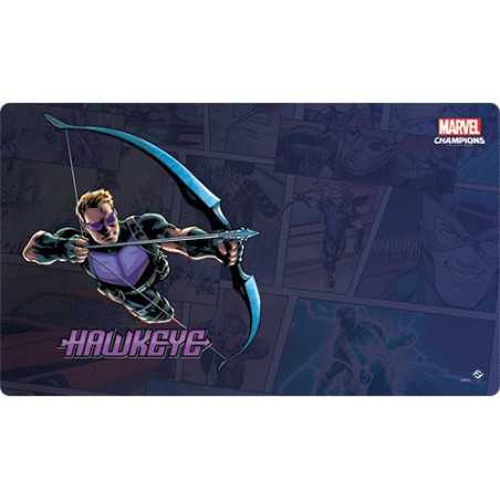 Take advantage of this new game mat, perfect for organizing your play space and protecting your cards. The Marvel Champions: Hawkeye Game Mat offers a 24 x 12 play area with plenty of room for your identity, upgrades, assets, and deck, while drawing you into the unfolding campaign with art of Hawkeye firing an arrow.