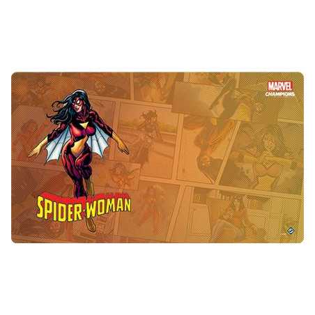 Take advantage of this new game mat, perfect for organizing your play space and protecting your cards. Marvel Champions: Spider-Woman Game Mat offers a 24" x 12" play area with plenty of room for your identity, upgrades, assets, and deck, while drawing you into the unfolding campaign with art of Spider-Woman leaping into action.