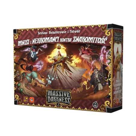 Rozszerzenie Massive Darkness 2: Mnisi i Nekromanci kontra Znakomitość wprowadza do gry dwie nowe Klasy: Mnichów i Nekromantów. Zawiera ono 4 Bohaterów, wraz ze wszystkimi potrzebnymi komponentami, a także nowego Grasującego Potwora: Znakomitość - niegdyś boską istotę, która została strącona do Pierwotnej Sfery za swój skrajny brak tolerancji dla niezliczonych wad śmiertelników.