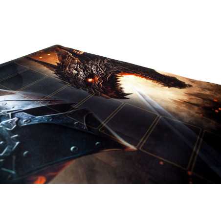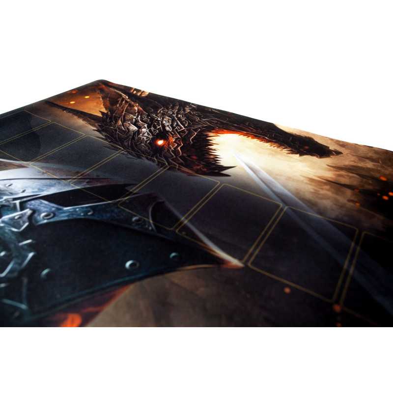 Antypoślizgowa, gumowa, mata dedykowana do gry Hero Realms. Mata przedstawia epickie starcie rycerza ze smokiem. Na planszy znajdują się miejsca na karty wykorzystywane podczas gry. Poza zwiększonymi walorami estetycznymi gry, mata dodatkowo chroni elementy przed zniszczeniem oraz przesuwaniem.