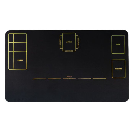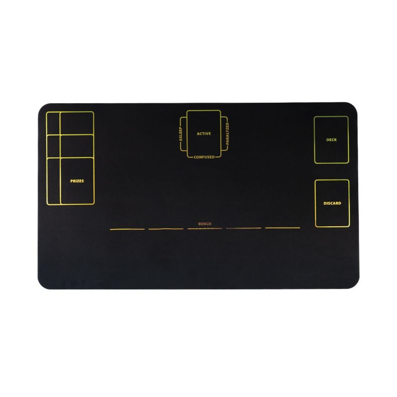 Na macie znajdziesz oznaczenia wszystkich stref niezbędnych do gry w Pokemon TCG: ACTIVE, BENCH, DECK, DISCARD, PRIZES oraz statusy specjalne takie jak ASLEEP, PARALYZED i CONFUSED. Holograficzne linie nie tylko ułatwiają orientację podczas gry, ale też przyciągają wzrok i dodają klimatu. Dzięki temu rozgrywka staje się płynniejsza, bardziej przejrzysta i dynamiczna, a nauka zasad dla początkujących graczy - znacznie łatwiejsza.
