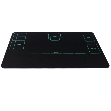 Mata została wykonana z elastycznej gumy o właściwościach antypoślizgowych. Spód pewnie trzyma się każdej powierzchni, a materiałowa góra chroni Twoje karty przed uszkodzeniami i zużyciem. Dzięki laserowemu cięciu krawędzi produkt nie strzępi się i prezentuje się znakomicie nawet po wielu sesjach. Rozmiar 61 x 35,5 cm idealnie odpowiada przestrzeni potrzebnej na komfortową rozgrywkę.