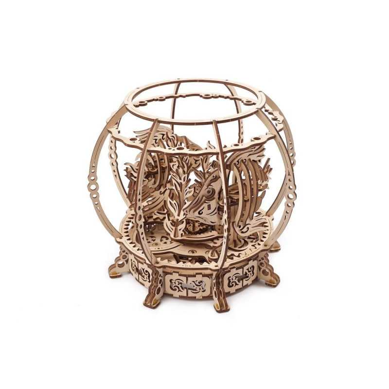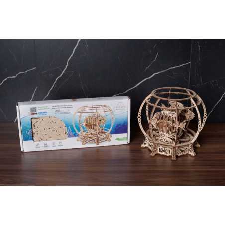 Nie każdy jest w stanie sprostać wyzwaniom i wydatkom związanym z założeniem i utrzymaniem akwarium z rybami słonowodnymi. Nawet podstawowe akwarium dla początkujących stanowi znaczną, ciągłą inwestycję czasu i środków. Ale z Mechanicznym Akwarium Ugears możesz zanurzyć się w fascynujący podwodny świat dzięki atrakcyjnemu, zabawnemu drewnianemu modelowi, który możesz zbudować, a następnie z dumą wyeksponować. Po złożeniu modelu Twoja rodzina i przyjaciele będą mogli godzinami cieszyć się widokiem automatycznych rybek pływających wokół drewnianym akwarium, a od czasu do czasu zajrzą przez liście do tajemniczego konika morskiego. A Ty nigdy nie będziesz musiał sprawdzać ani wymieniać wody!