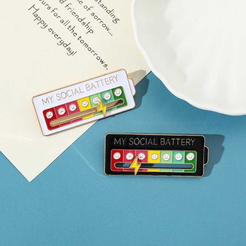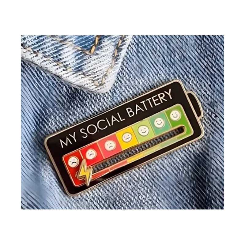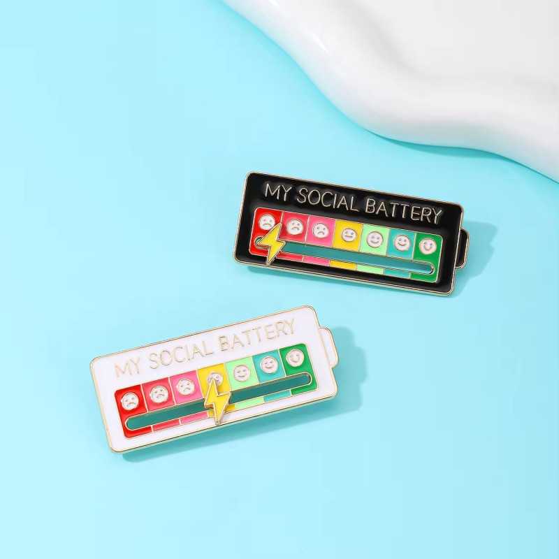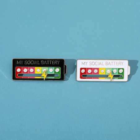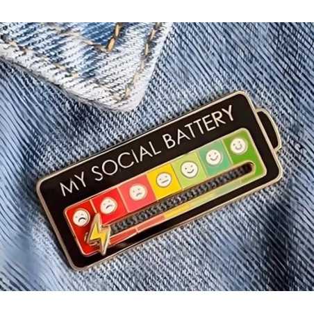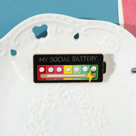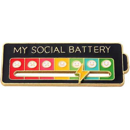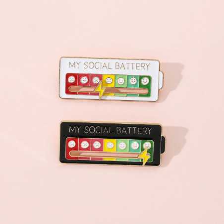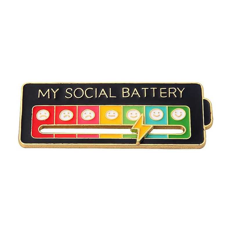 Metalowa Przypinka - My Social Battery Mood Tracker Nastrojnik Czarny