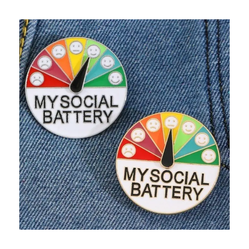 Metalowa Przypinka - My Social Battery Mood Tracker Nastrojnik Koło Srebrny