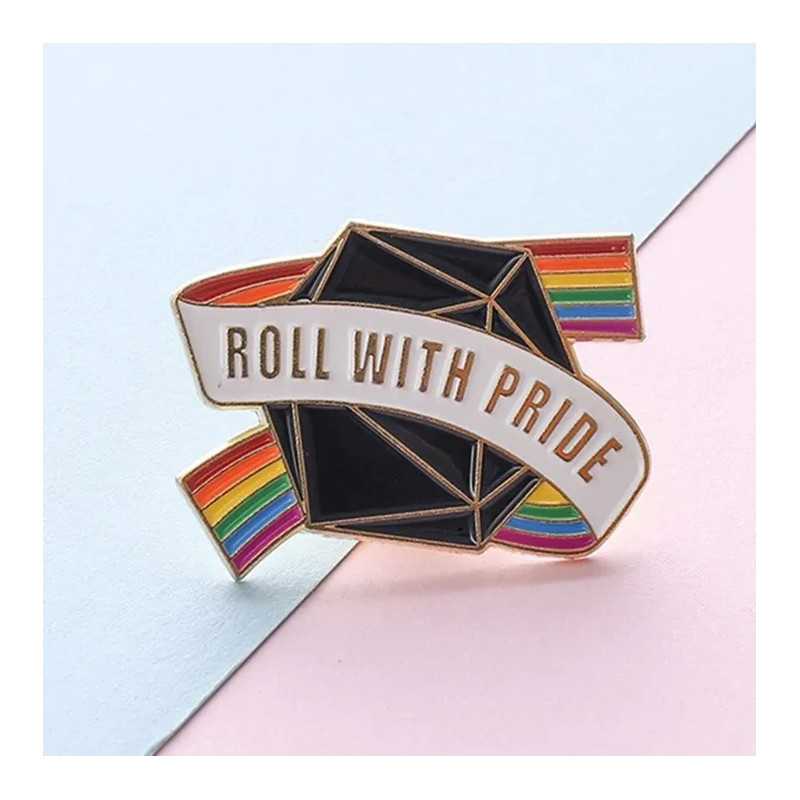 Metalowa Przypinka Pride LGBT LGBTQ RPG - Roll With Pride