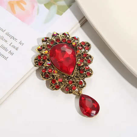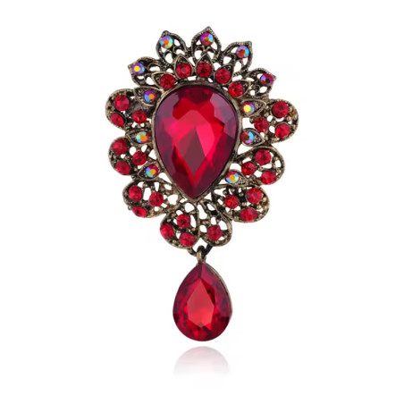 Metalowa Przypinka Urocza Elegancka Kryształowa Broszka - Czerwona