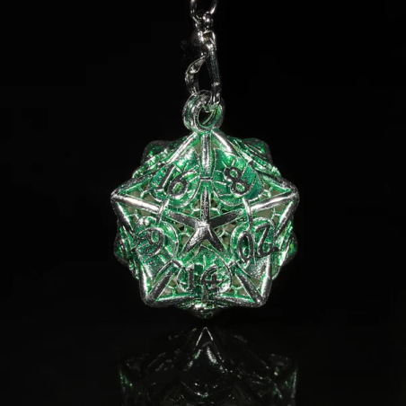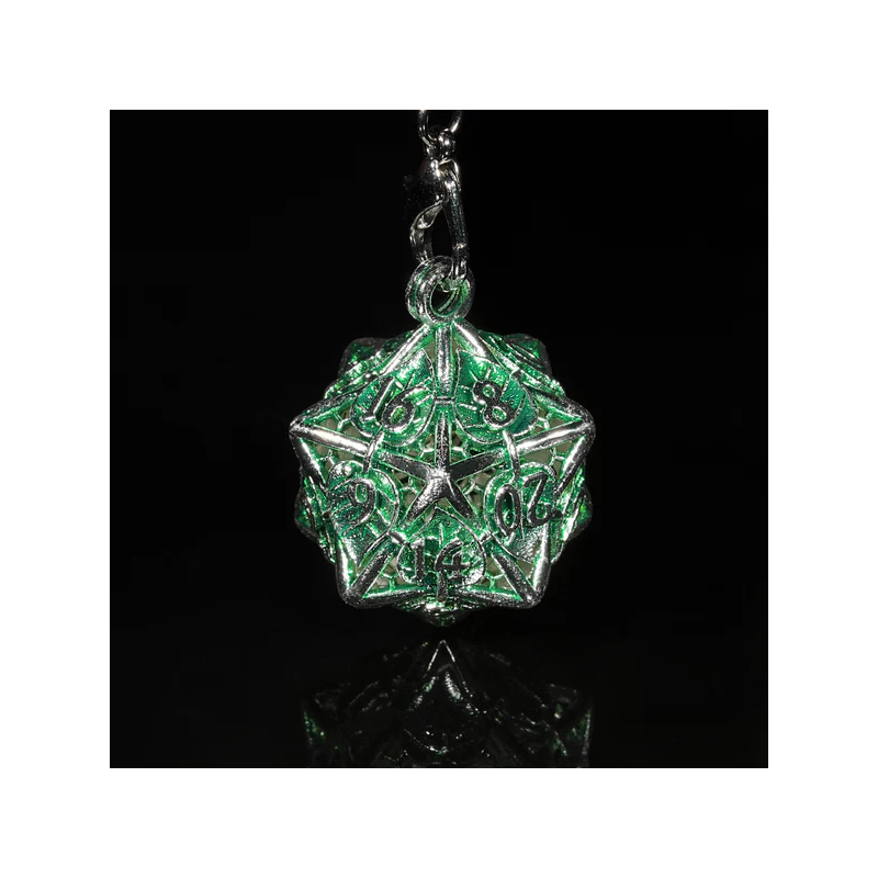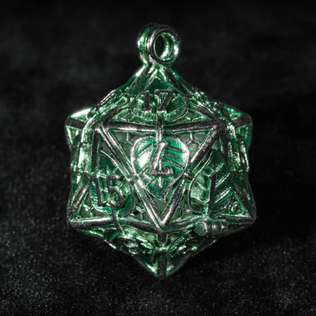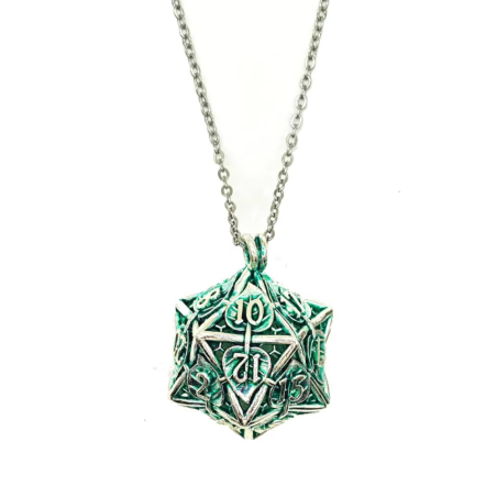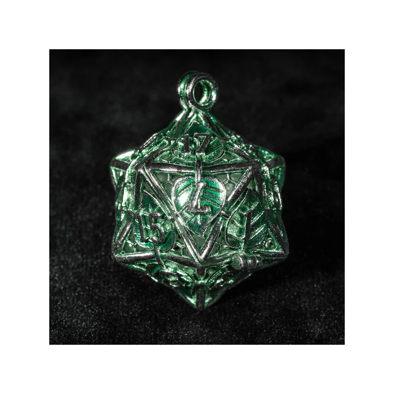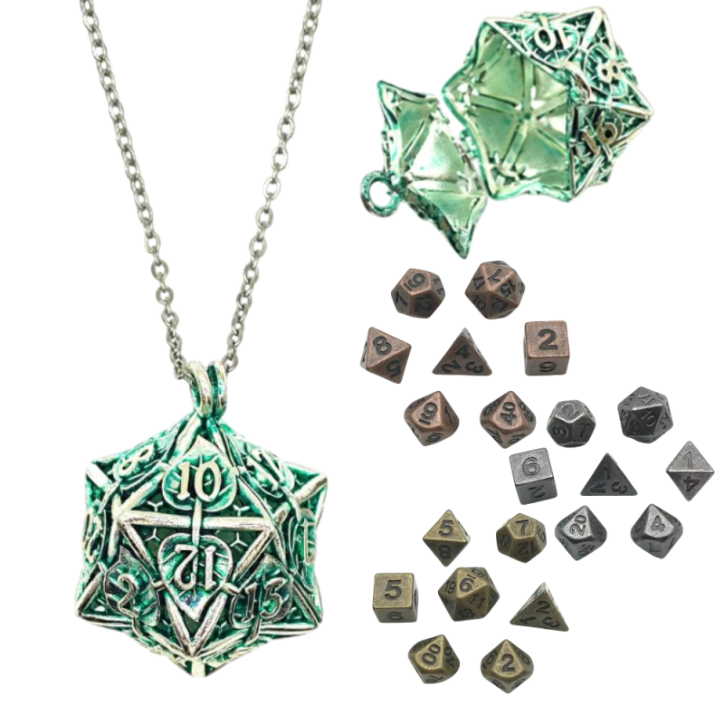 Metalowy Naszyjnik Kostka K20 Pudełko na Mini Zestaw Kostek - Leśny Elf + Zestaw 7 Malutkich Metalowych Kości