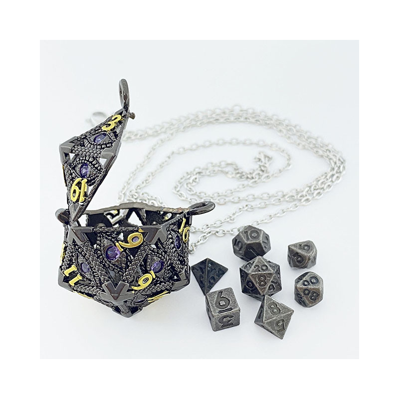 Zestaw siedmiu metalowych kości do gier fabularnych