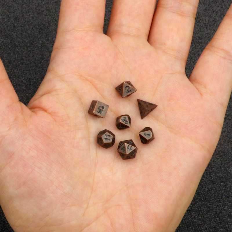 Zestaw siedmiu metalowych kości do gier fabularnych