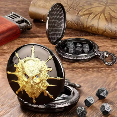 Pudełko w kształcie zegarka kieszonkowego to elegancki i funkcjonalny dodatek, który łączy klasyczny design z praktycznością. Wystarczy jedno otwarcie, aby mieć pod ręką wszystko, co niezbędne do każdej sesji – bez potrzeby szukania kości w torbie czy plecaku. Wykonany z metalu, zegarek prezentuje się stylowo i solidnie, a jego kieszonkowa forma sprawia, że zawsze możesz mieć go przy sobie. To doskonały wybór dla graczy, którzy cenią połączenie pasji z elegancją, a także dla tych, którzy szukają niepowtarzalnego sposobu przechowywania swojego zestawu kości.