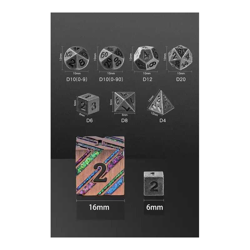 Zestaw siedmiu metalowych kości do gier fabularnych