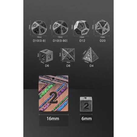 Zestaw siedmiu metalowych kości do gier fabularnych