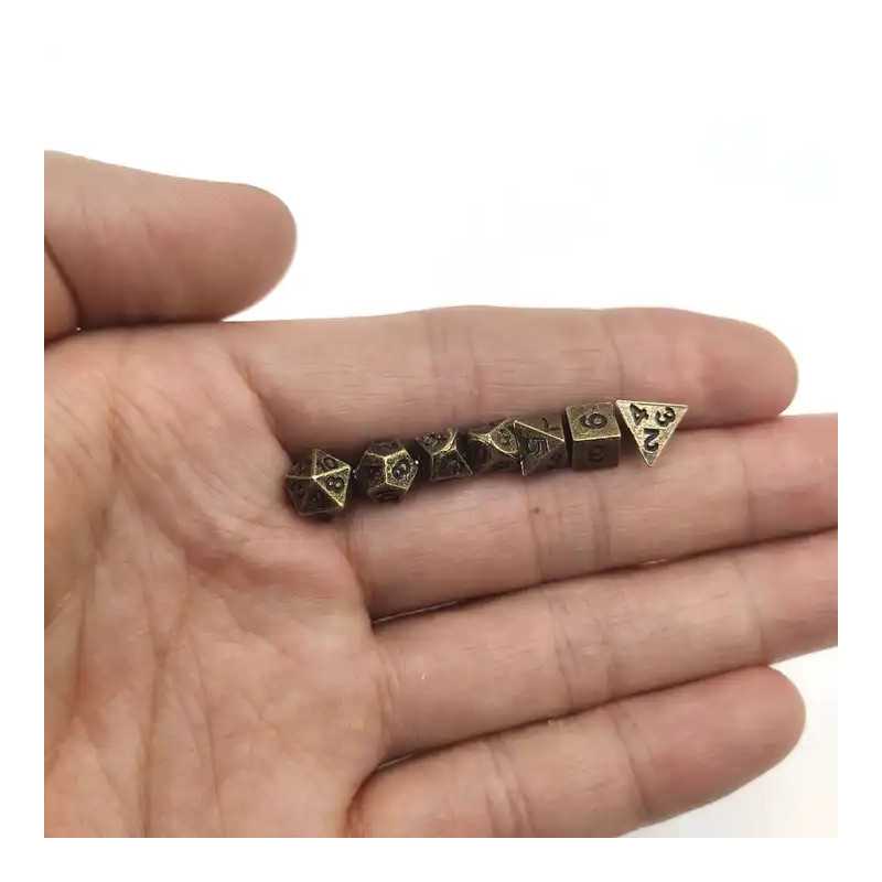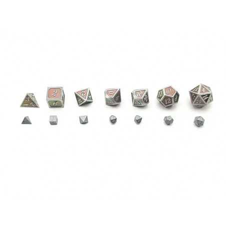 Zestaw siedmiu metalowych kości do gier fabularnych