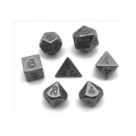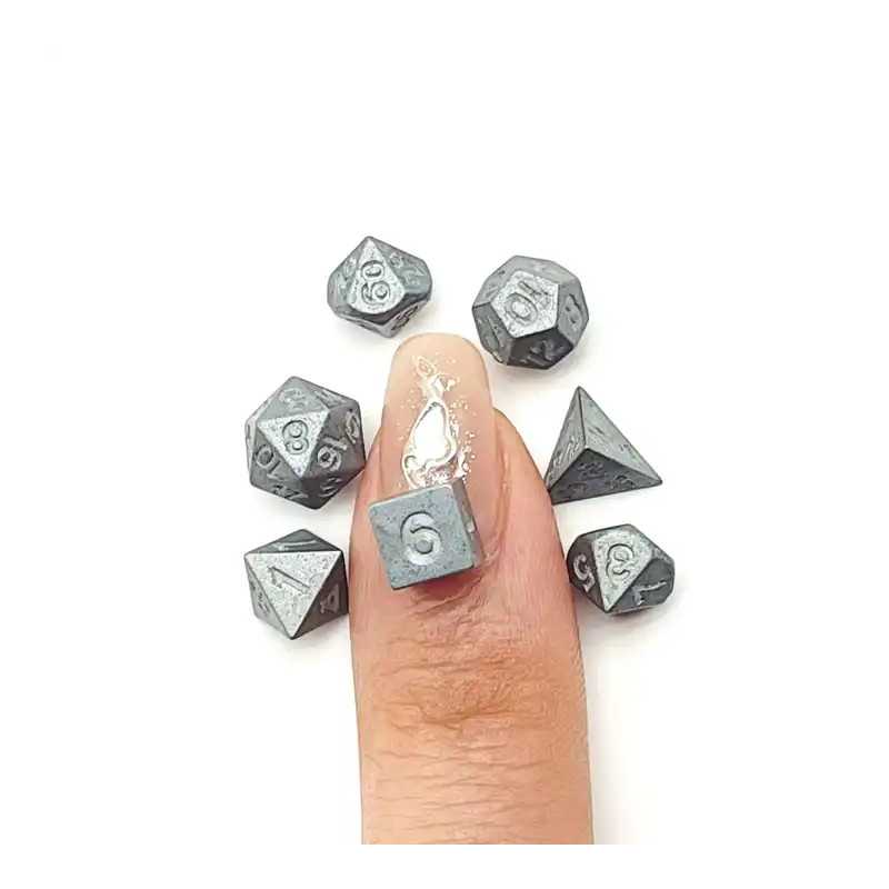 Zestaw siedmiu metalowych kości do gier fabularnych