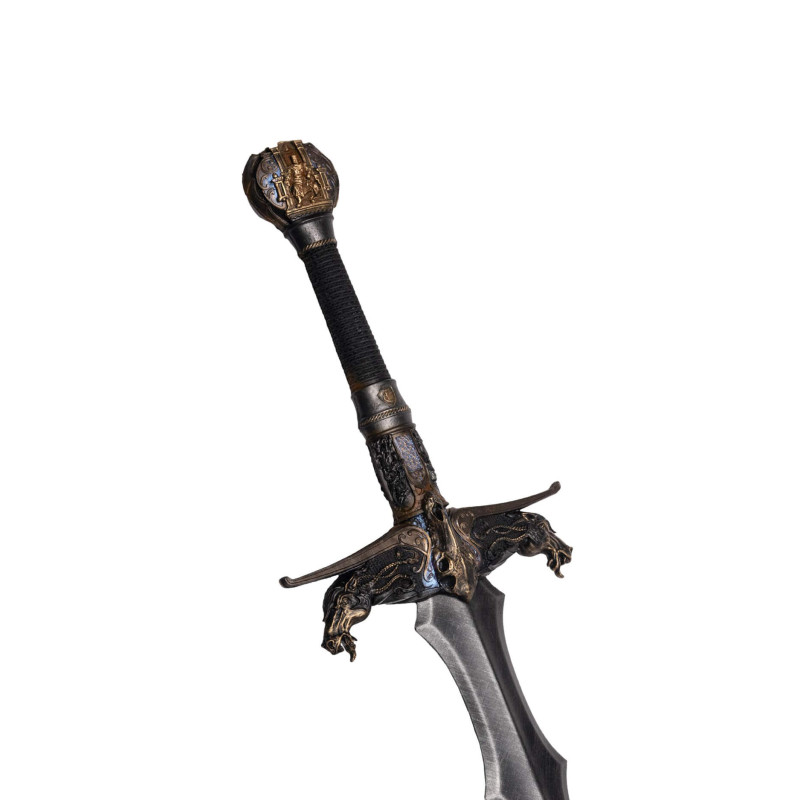 Miecz piankowy LARP Harbinger II, arcydzieło marki Calimacil. Inspirowany Czterema Jeźdźcami Apokalipsy, zachwyca imponującym wyglądem i misternymi detalami. To doskonałe połączenie mrocznego, złowieszczego stylu z elegancją. Stanowi niezwykłe dzieło sztuki, które jest jednocześnie w pełni funkcjonalne. Dzięki królewskim detalom idealnie sprawdzi się dla rycerzy, szlachciców lub mrocznych władców.