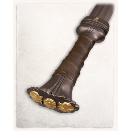 Nowe ostrze Katzbalger zostało wykute z myślą o bardziej historycznym wyglądzie. Dzięki wyraźnie zarysowanemu sztychowi, ostrym krawędziom i cięższej rękojeści miecz jest łatwy w prowadzeniu i prezentuje się doskonale. Wykonany z naszego słynnego piankowego materiału Calimacil, pozostaje bezpieczny i niezwykle trwały. Stalowoszara głownia osadzona jest na srebrnej rękojeści z detalami w postarzanym złocie. Wymienna osłona dłoni – taka sama jak tsuby w naszych katanach – sprawia, że miecz jest bardziej wszechstronny i łatwiejszy w przechowywaniu. Miecz Katzbalger to absolutnie niezbędny element wyposażenia rekonstruktorów historycznych, szczególnie tych odtwarzających epokę renesansu.