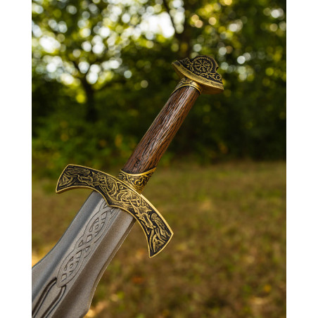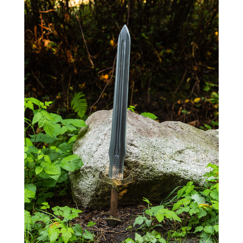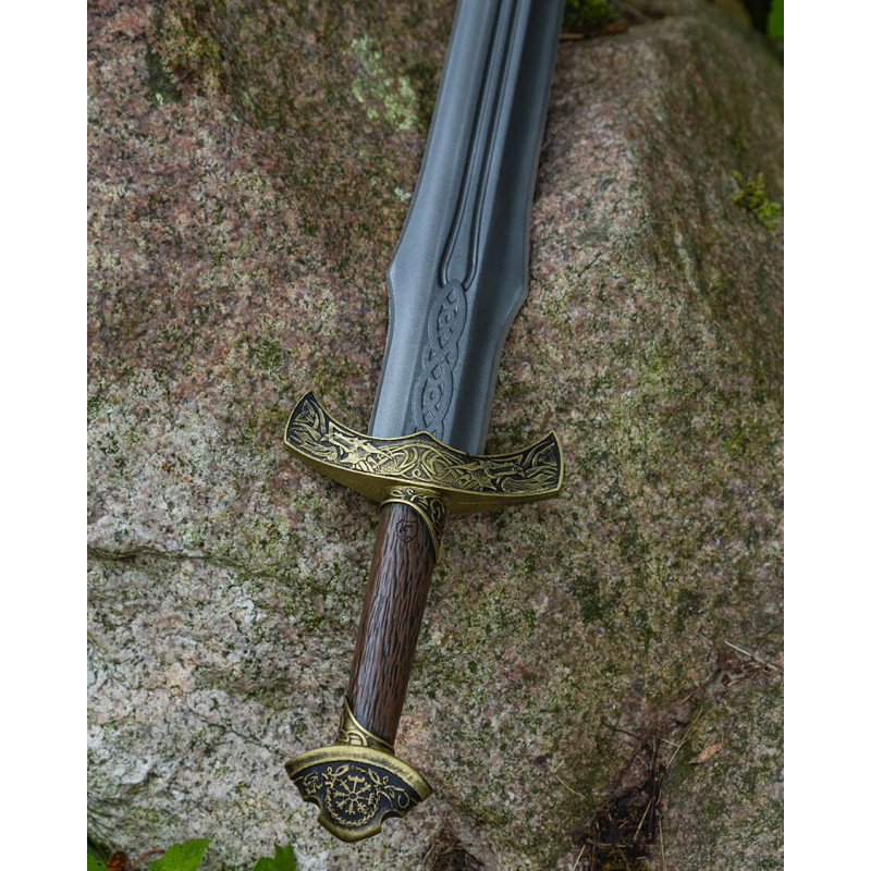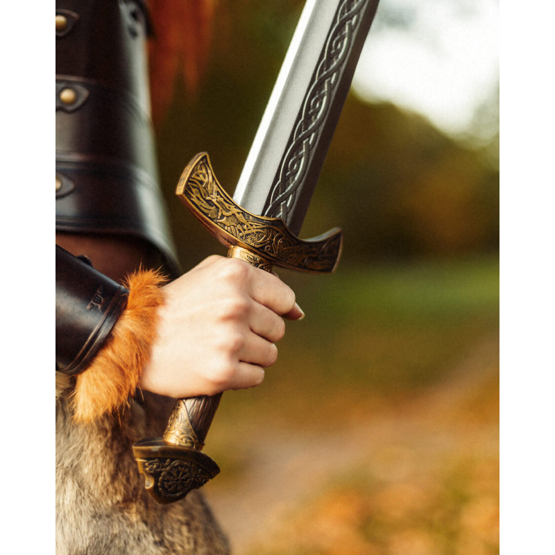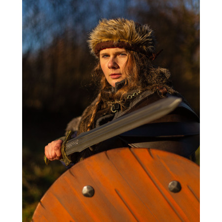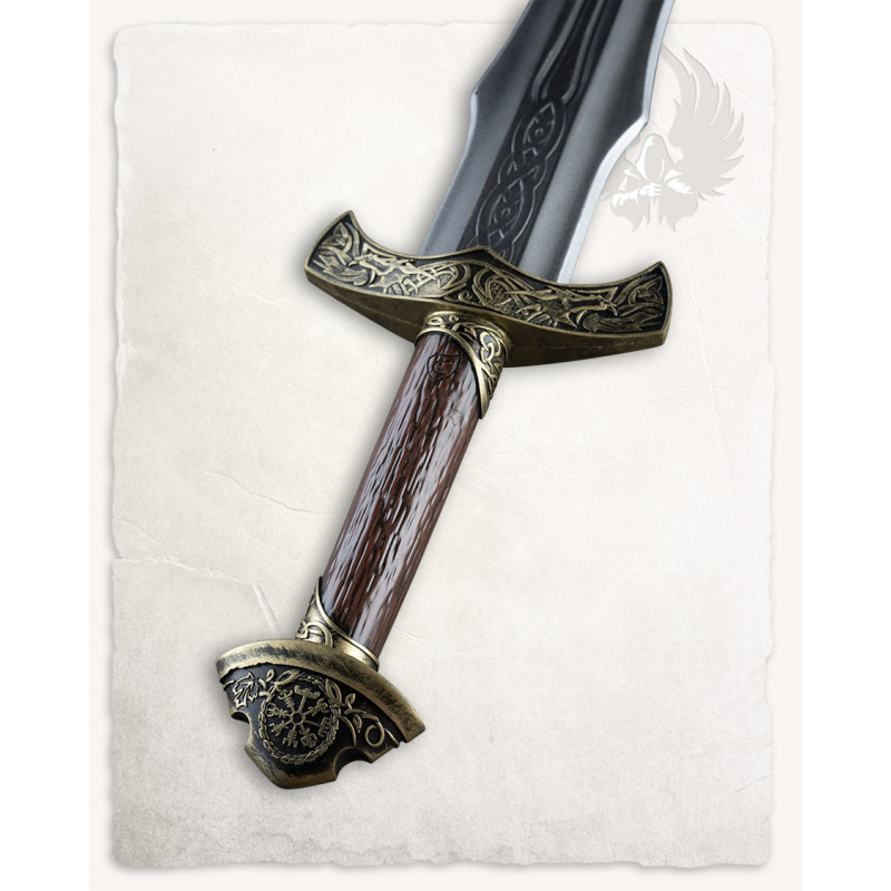 Stworzenie wikińskiego miecza „Hersir” ponownie wymagało doświadczenia i innowacyjności, z których znana jest firma Calimacil. Przekraczając granice możliwości, kanadyjski producent broni z pianki stworzył miecz o wyjątkowej jakości i królewskiej elegancji. Jelec, inspirowany historycznymi wzorcami, ozdobiono grawerunkami przedstawiającymi smoki. Realistyczne odwzorowanie drewnianej rękojeści, ujętej w dwa grawerowane metalowe pierścienie, doskonale dopełnia wyglądu broni. Głowica miecza zdobiona jest wikińskim kompasem – vegvisirem – który poprowadzi cię ku kolejnej przygodzie.