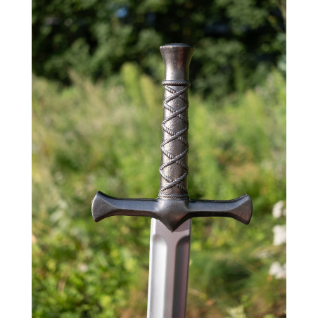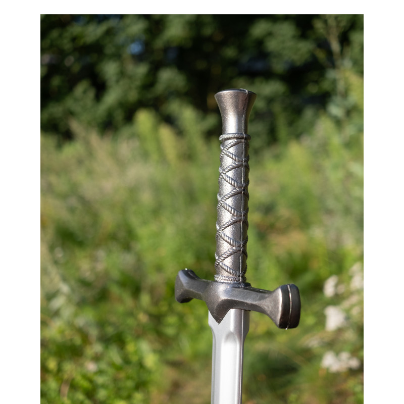 LARP-owy krótki miecz "Silberfang" wyróżnia się eleganckim wyglądem i skutecznością w walce. Całkowicie srebrny, oferuje atrakcyjne połączenie stylowego designu i funkcjonalności. Dzięki krótkiej, elastycznej głowni wykonanej z bezpiecznej pianki PU, "Silberfang" jest szczególnie odpowiedni dla szermierzy i zwinnych wojowników, którzy polegają na mobilności. Ten krótki miecz łączy prosty design z wysoką funkcjonalnością, co czyni go doskonałym wyborem dla ról ceniących styl i skuteczność.