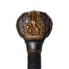 Miecz piankowy LARP Harbinger II, arcydzieło Calimacil inspirowane Czterema Jeźdźcami Apokalipsy, charakteryzuje się oszałamiającym designem z misternymi detalami, głowicą w stylu Rycerza w Kolczudze, jelcem w kształcie demonicznej końskiej głowy oraz klingą Centuriones Equitae. To doskonałe połączenie grozy i królewskiej elegancji – niezwykłe dzieło sztuki i funkcjonalności. Ten miecz, ozdobiony królewskimi detalami, idealnie pasuje do rycerzy, szlachciców i lordów – zarówno z naszego świata, jak i odległych krain. Jednak sam miecz zdaje się przyzywać wszelkie diabelskie postacie, by wzniosły go i sprowadziły apokalipsę – lub inne złowrogie zamiary – do życia.