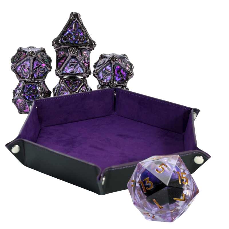 Wybierz komplet kości z tacką do rzucania, aksamitnym woreczkiem pod kolor, monetami, albo zmywalną matą. Obdaruj kogoś zestawem nietypowych kostek, które świecą w ciemności lub całym niezbędnikiem gadżetów RPG – w sam raz dla początkującego i zaawansowanego gracza!