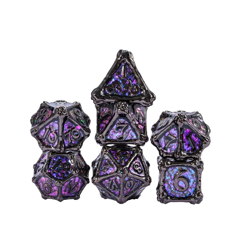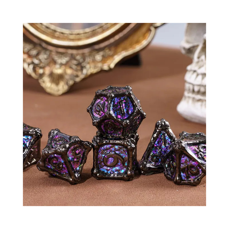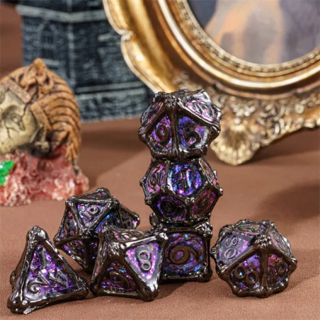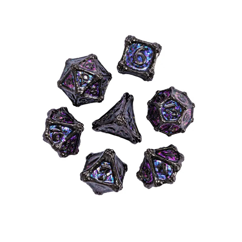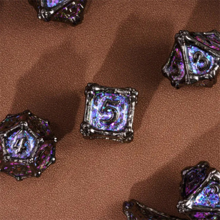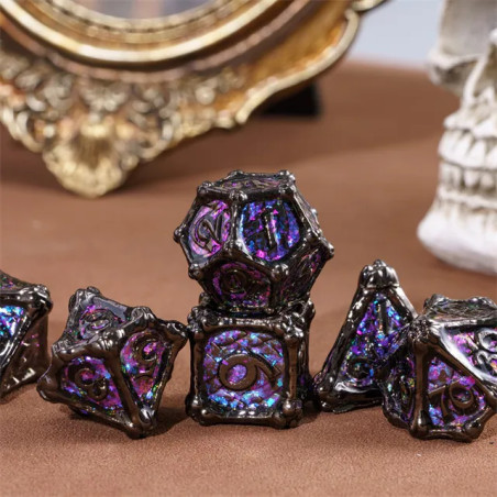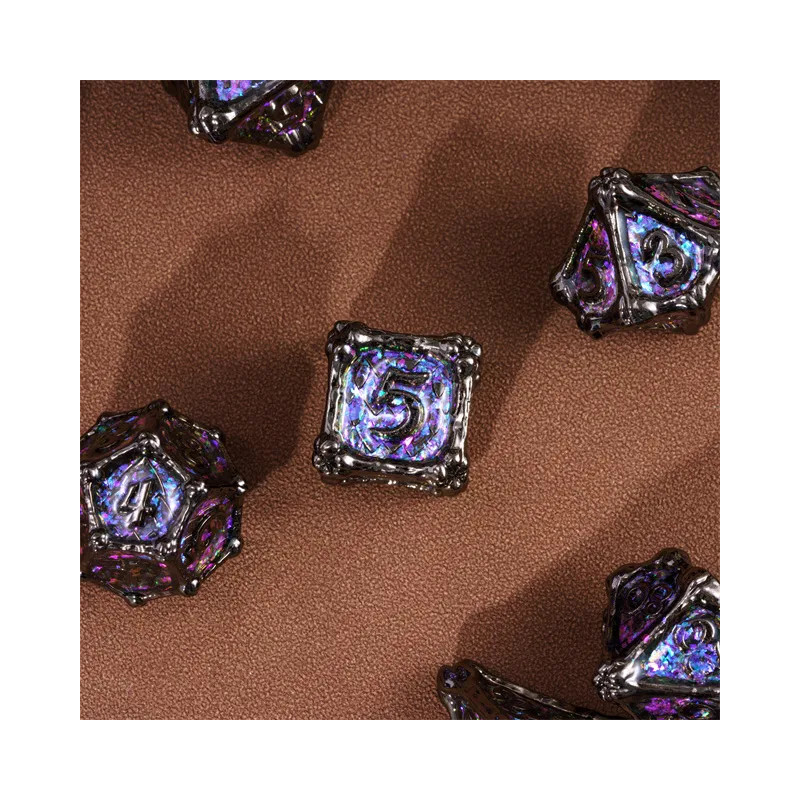 • Zestaw 7 kości wykonanych z metalu. Idealnie nadają się do każdego systemu i dla każdego gracza.