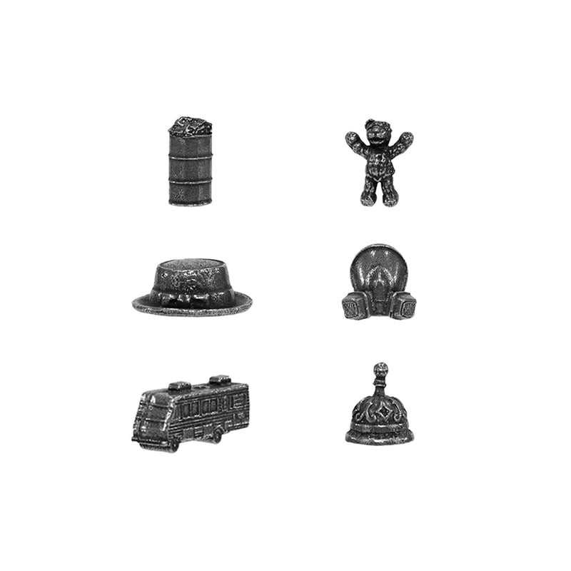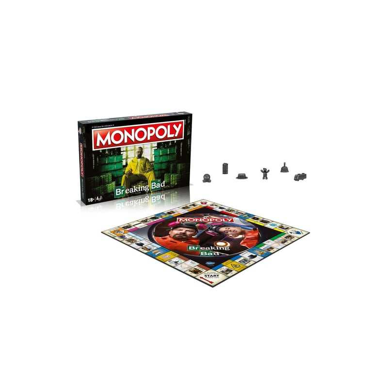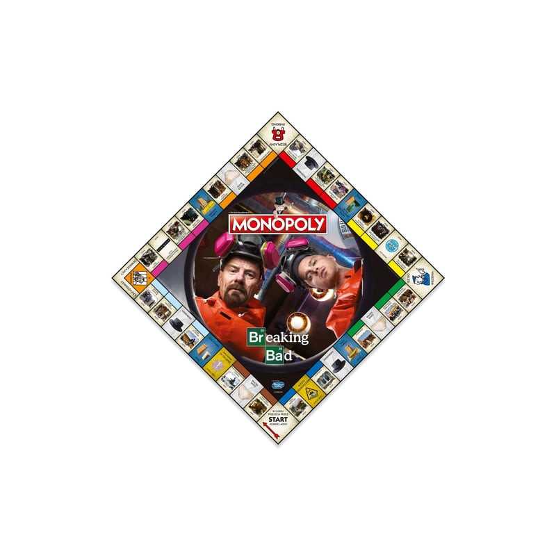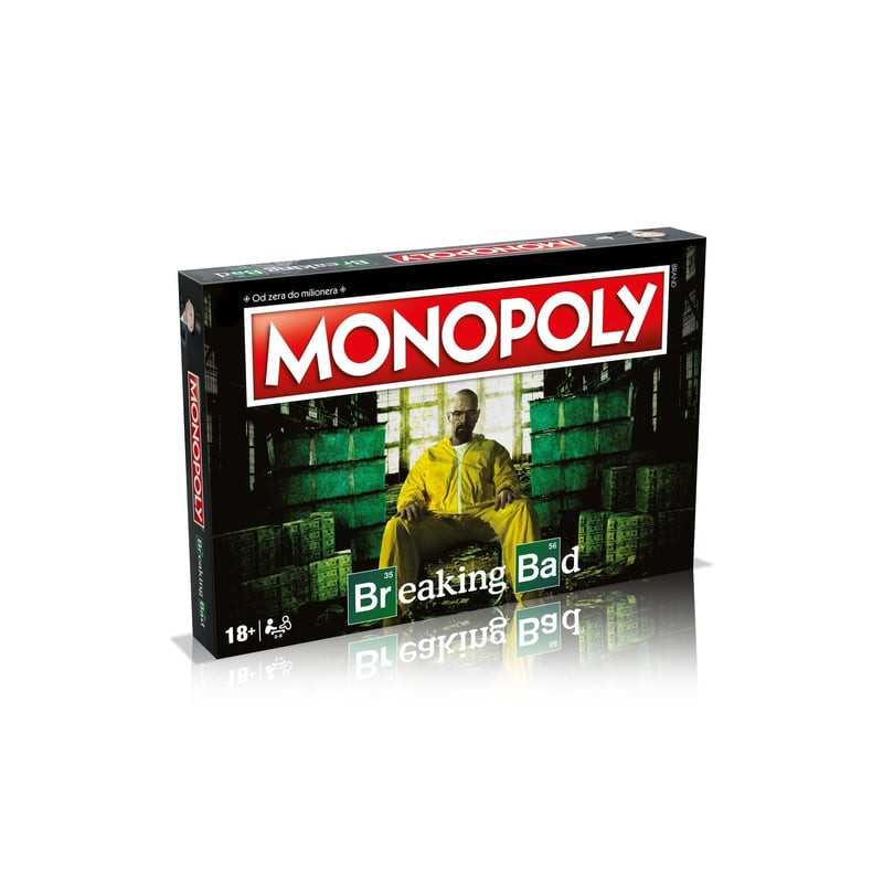 MONOPOLY Breaking Bad Wkrocz do świata Waltera White'a i zbuduj własne imperium! Podróżuj po planszy, odwiedzając lokalizacje znane z serialu Breaking Bad. Przejmuj miejscówki, stawiaj domki pod namiotem lub superlaboratoria, by zdobyć przewagę na planszy! Zanim rozpoczniesz grę, wybierz jeden z sześciu metalowych pionków kolekcjonerskich - dzwonek Hectora, beczkę z pieniędzmi, kamper, kapelusz Heisenberga, różowego misia lub maskę gazową. Niepowtarzalne pionki to nie jedyny detal z serialu Breaking Bad. Zamiast klasycznych kart Szansy i Kasy Społecznej, szukaj szczęścia losując z talii Waltera Whitea i Heisenberga. Oba wcielenia bohatera mogą powiększyć Twoją fortunę lub przynieść porażkę. To co, gotowy na pichcenie?Zasady gry Gracze wybierają pionki i pobierają banknoty o nominałach 500, 100, 50, 20, 10, 5 i 1. Rozgrywkę rozpoczyna osoba, która wyrzuci najwięcej oczek na kostce. Zadaniem graczy jest zdobycie jak największej fortuny, wykupując pola na planszy. Uważajcie! Za wejście na czyjeś pole należy słono zapłacić. Wygrywa gracz, który zdobędzie przewagę na planszy i doprowadzi pozostałych uczestników do bankructwa. Szczegółowa instrukcja znajduje się w pudełku.Zawartość: