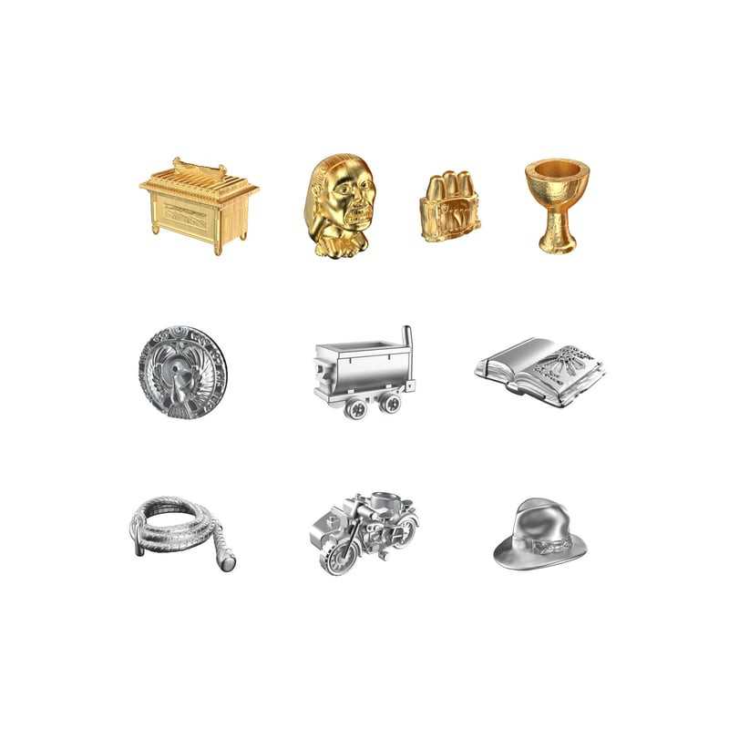 Fortuna i chwała czekają! Odwiedź pamiętne miejsca z pierwszych trzech filmów z serii Indiana Jones podczas tej podróży dookoła świata! Czy znajdziesz cenne artefakty, unikniesz śmierci w pułapkach i pokonasz konkurencyjnych poszukiwaczy fortuny podczas swojej wyprawy po chwałę? Znajdź Złotego Idola, Arkę Przymierza, Kamienie Sankary i Świętego Graala! Jednak podczas zwiedzania egzotycznych miejsc i poszukiwania artefaktów, uważaj na pająki i węże! Zawartość opakowania: plansza, 6 żetonów, 4 złote artefakty, 4 karty artefaktów, 28 kart tytułów, 16 kart pułapek i pościgów, 16 kart fortuny i chwały, 32 pająki, 12 węży, 2 kości, pakiet pieniędzy i instrukcja gry.