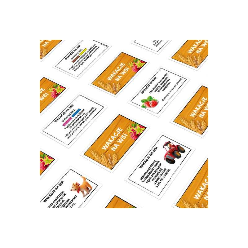 Gracze wybierają pionki i pobierają banknoty MONOPOLY. Rozgrywkę rozpoczyna osoba, która wyrzuci najwięcej oczek na kostce. Zadaniem graczy jest zdobycie jak największej fortuny, wykupując pola na planszy. Uważajcie! Za wejście na czyjeś pole należy słono zapłacić. Wygrywa gracz, który zdobędzie przewagę na planszy i doprowadzi pozostałych uczestników do bankructwa. Szczegółowa instrukcja znajduje się w pudełku. Kiedy już opanujecie reguły rozgrywki czeka na Was zupełnie nowy poziom wyzwania możecie spróbować nowych reguł i zobaczyć, kto wówczas okaże się zwycięzcą. Najważniejsza jest uczciwość i chęci do dobrej zabawy!Udaj się na targ rolniczy, do ogrodu warzywnego i krów, a może wolisz odpocząć jedząc truskawki - czy będziesz winien pieniądze, czy zbierzesz nagrody?Kupuj ziemie, a gdy zdobędziesz wszystkie miejsca w jednym kolorze, umieść tekturowy żeton swojej postaci, aby móc pobierać więcej pieniędzy, gdy ktoś wyląduje na twoim miejscu. Zawartośćplansza,instrukcja,4 specjalne pionki z wizerunkiem pomocnych gospodarzy i ich dzieci,24 karty Wakacje na wsi,36 papierowych znaczników,70 banknotów MONOPOLY Junior,kostka.