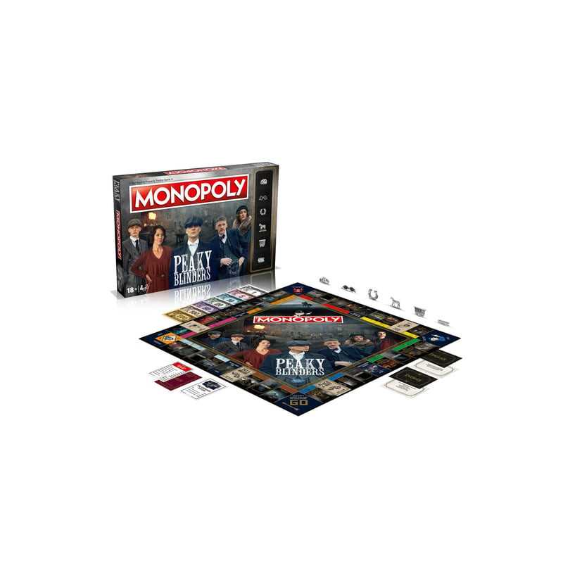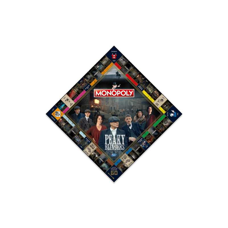 MONOPOLY Peaky Blinders. Przenieś się na brukowane ulice Birmingham lat 20. XX wieku Uważaj na więzienie, nie ma litości nawet dla największych gangsterów. Unikatowy wariant MONOPOLY. Wyjątkowe niuanse i dedykowane serialowi detale gry MONOPOLY zostały stworzone, by zachwycać największych miłośników Peaky Blinders. Oprócz dedykowanej planszy i szaty graficznej w grze znajdziesz unikatowy zestaw pionków kolekcjonerskich, a karty szansy i kasy społecznej zastąpiły dedykowane serialowi karty Enemies oraz Families. Wejdź w świat klimatycznego serialu, rozgrywając partię MONOPOLY Gracze wybierają pionki i pobierają banknoty o nominałach 500, 100, 50, 20, 10, 5 i 1. Rozgrywkę rozpoczyna osoba, która wyrzuci najwięcej oczek na kostce. Zadaniem graczy jest zdobycie jak największej fortuny, wykupując pola na planszy. Uważajcie plansza do gry,6 pionków,28 kart "Tytuł Własności",16 kart "Enemies",16 kart "Families",plik banknotów,32 domy,12 hoteli,2 kostki,instrukcja."