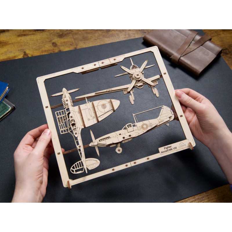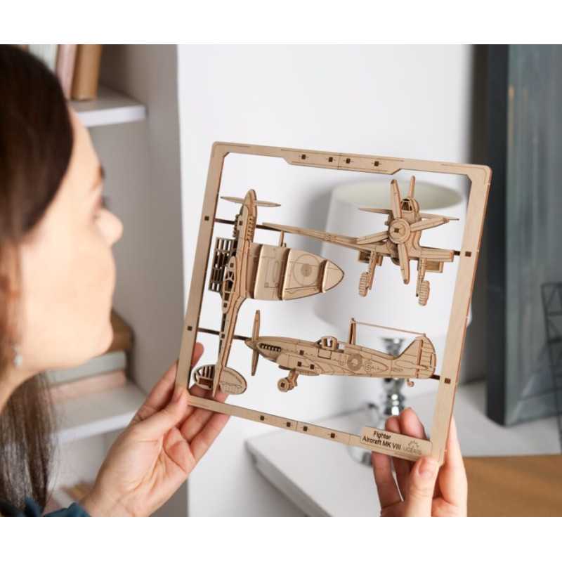 UGEARS z dumą przedstawia Myśliwiec z naszej kolekcji klasycznych pojazdów – pierwsza seria w nowej linii puzzli UGEARS 2,5D! Ten fajny drewniany model samolotu DIY 2,5D ma ruchome elementy i jest dostarczany we własnej ramce, odpowiedniej do powieszenia na ścianie lub postawienia na biurku czy półce.