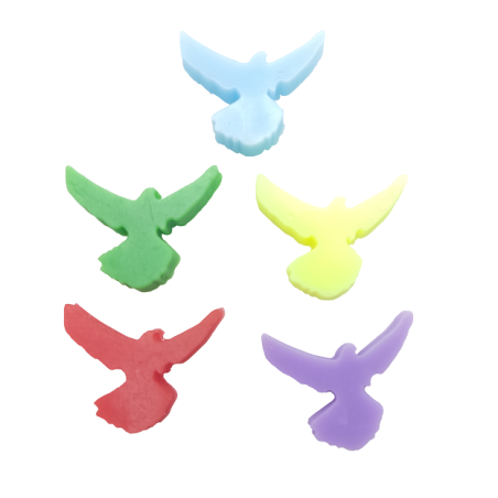 Na skrzydłach: Zestaw znaczników graczy to wykonane z żywicy figurki w kształcie ptaków, które możesz wykorzystać w grze Na skrzydłach. Zastępują one kolorowe kostki z podstawowej wersji gry.