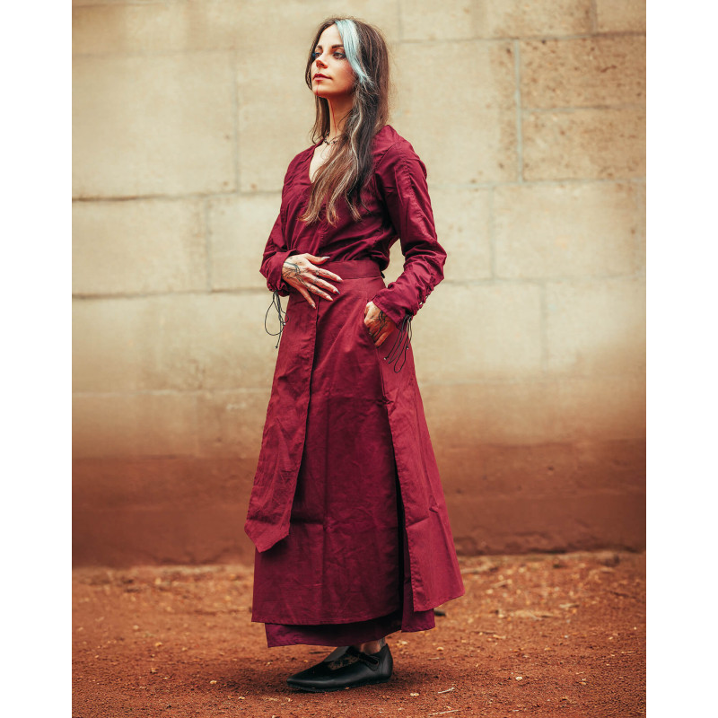 "Antaris" to narzutka, którą można nosić samodzielnie lub na spodnie, halkę czy suknię. Wiązana z tyłu sznurkiem, pozwala łatwo dopasować rozmiar. Rozcięcia po bokach zapewniają większą swobodę ruchu, a w bocznych szwach ukryte są praktyczne kieszenie.