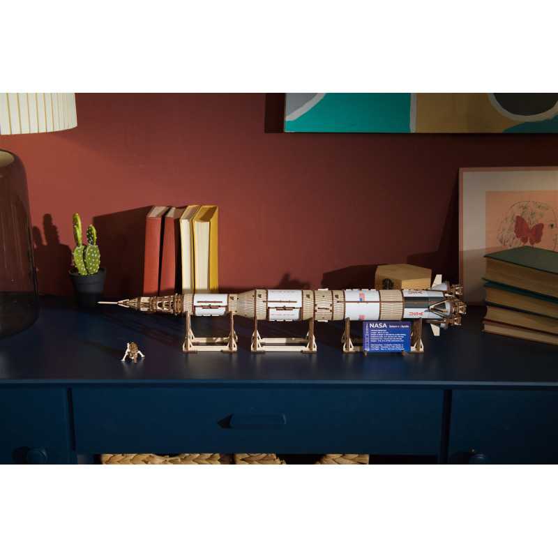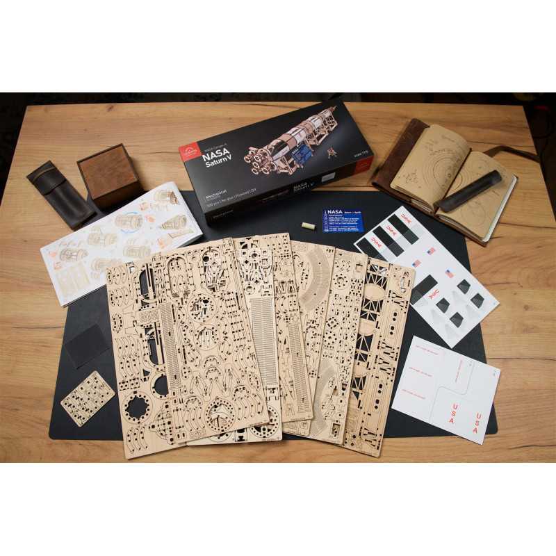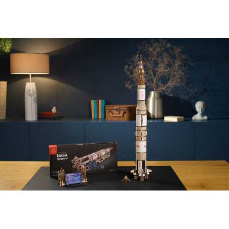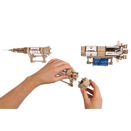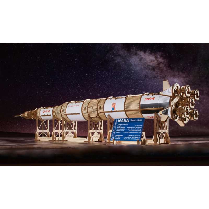 Model Saturn V od Ugears to drewniany model w skali 1:170 największej rakiety, jaką widział świat. Dołącza on do Wahadłowca Discovery, Załogowego Łazika Marsjańskiego oraz małego Łazika Marsjańskiego w kolekcji pojazdów kosmicznych Ugears. Saturn V posiada trzyczęściową podstawkę do ekspozycji, która pozwala na pionowe lub poziome ułożenie modelu. Można to zrobić zarówno w całości, jak i w oddzielnych stopniach.