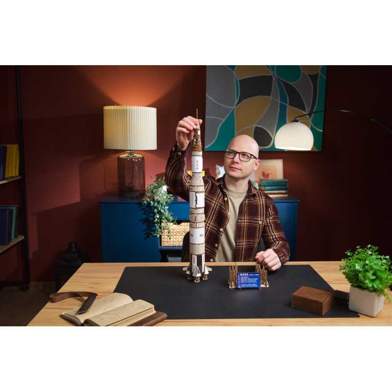 Rakieta Saturn V od Ugears to drewniany model największej rakiety, jaką świat widział w skali 1:170. Dołącza do serii NASA: Wahadłowca Discovery, Załogowego Łazika Marsjańskiego i Łazika Księżycowego.