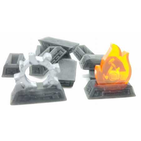 Zestaw 22 podstawek pod znaczniki pożaru i uszkodzeń pasujących do gry planszowej Nemesis.