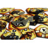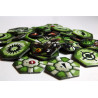 Każda armia składa się z 35 żetonów, na które składają się żetony jednostek oraz akcji specjalnych. Jednostki wykłada się na planszę, na dowolnym polu nie zajętym przez inny żeton. Każda z nich ma oznaczenie informujące, czy jest jednostką strzelającą czy walczącą wręcz a także inicjatywę (o wartości od 0 do 3). Na żetonie znajdują się także symbole oznaczające z jaką siłą i w jakie kierunki atakuje. Niektóre jednostki mają zdolności specjalne, np. „Sieciarz” może zablokować działanie sąsiadującej jednostki, inne mogą atakować dwukrotnie, jeszcze inne mają zamontowany pancerz itp. Symboli jest niewiele, są czytelne i bardzo łatwo się w nich połapać - nie trzeba ich nawet specjalnie znać przed rozgrywką. Przykładowe żetony można zobaczyć w galerii poniżej.