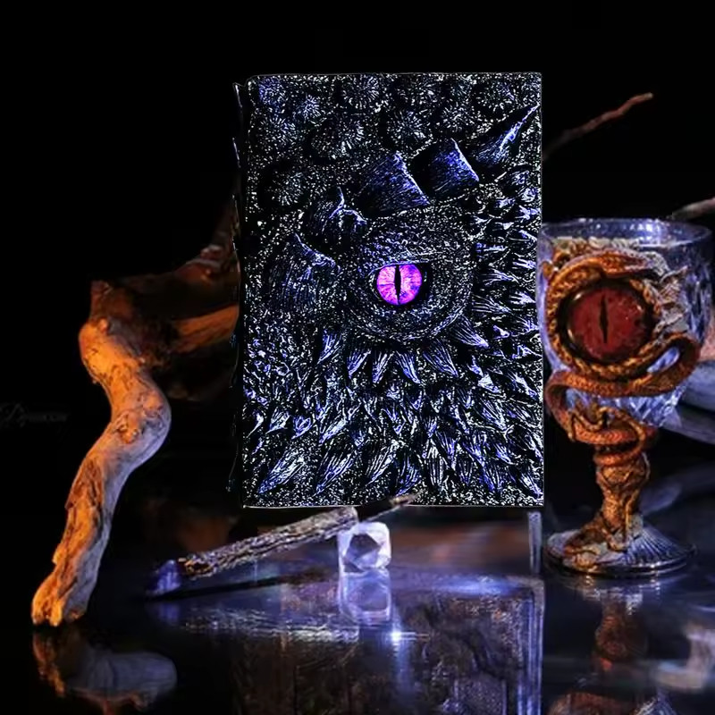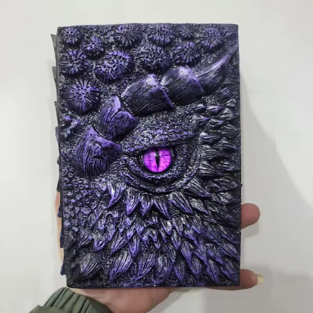 Smoki potrafiły kiedyś pisać! Ich alfabet klinowy pełny był krótkich spięć gęstych sensów w dwusylabowych słowach. Ten natomiast pamiętnik był przeznaczony dla jedynego smoka, który potrafił obierać ludzką formę i spisywać swoje myśli w języku ludzi. Nigdy do niego nie dotarł. Po drodze zdarzyły się rzeczy tragiczne, o których nie wypada pisać. Puste strony symbolizują potencjał historii, które mogły być przez niego spisane i ogrom wiedzy, który doświadczały smocze oczy jarzące się fioletem. Teraz smoczy pamiętnik może być Twój.