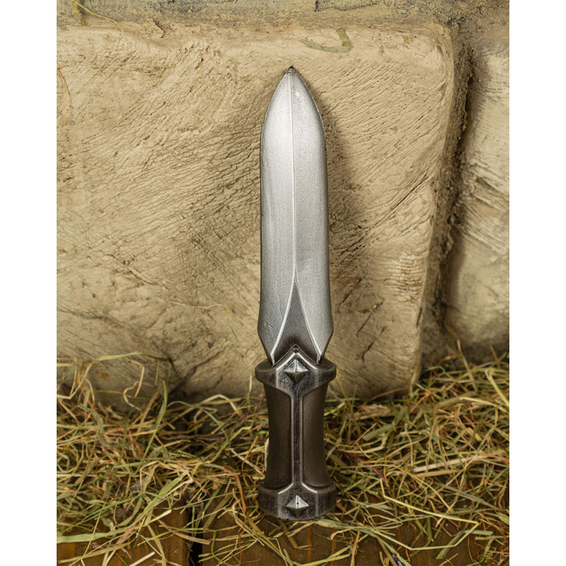 Nóż do rzucania Ferro Steel 2. edycja z serii Battle Standard charakteryzuje się prostym, funkcjonalnym wyglądem w jednolitym, srebrno-szarym kolorze. Rękojeść ozdobiona jest drobnymi nitami dekoracyjnymi i wyróżnia się ciemnym, szczotkowanym wykończeniem. W porównaniu z pierwszą edycją zastosowano ulepszoną piankę o zwiększonej odporności na rozdarcia, co czyni nóż jeszcze trwalszym. Jak zwykle, Ferro wykonany jest całkowicie bez sztywnego rdzenia i jest w pełni elastyczny — idealny do bezpiecznego i realistycznego odtwarzania ataków rzutowych podczas LARP-ów.